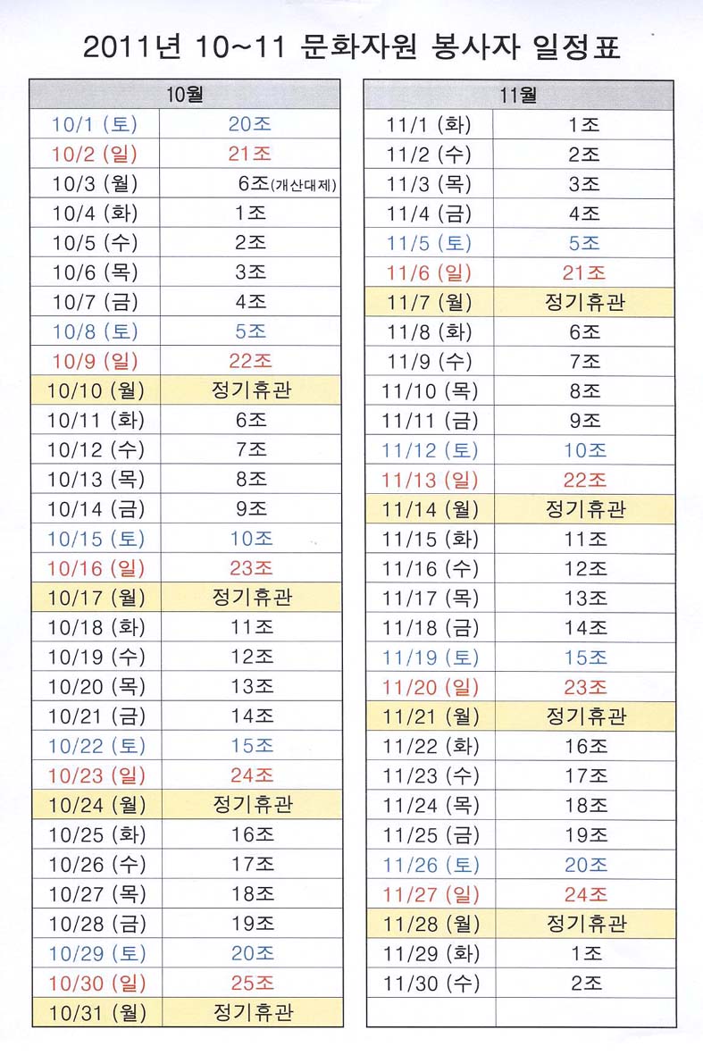 2011³â10~11¿ù ¹®ÈÀÚ¿ø ºÀ»çÀÚ ÀÏÁ¤Ç¥